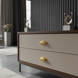 Der Griff DIAMO in matter Goldausführung ist die ideale Wahl für Innenräume, in denen Eleganz, sanfter Glanz und zeitloses Design vereint werden.