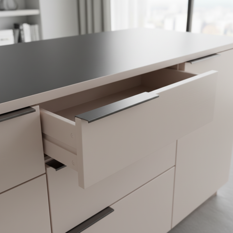 Der Griff hat ein sehr dünnes Profil, was eine komfortable Nutzung ohne störende visuelle Effekte auf den Möbeln gewährleistet.