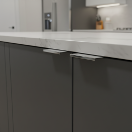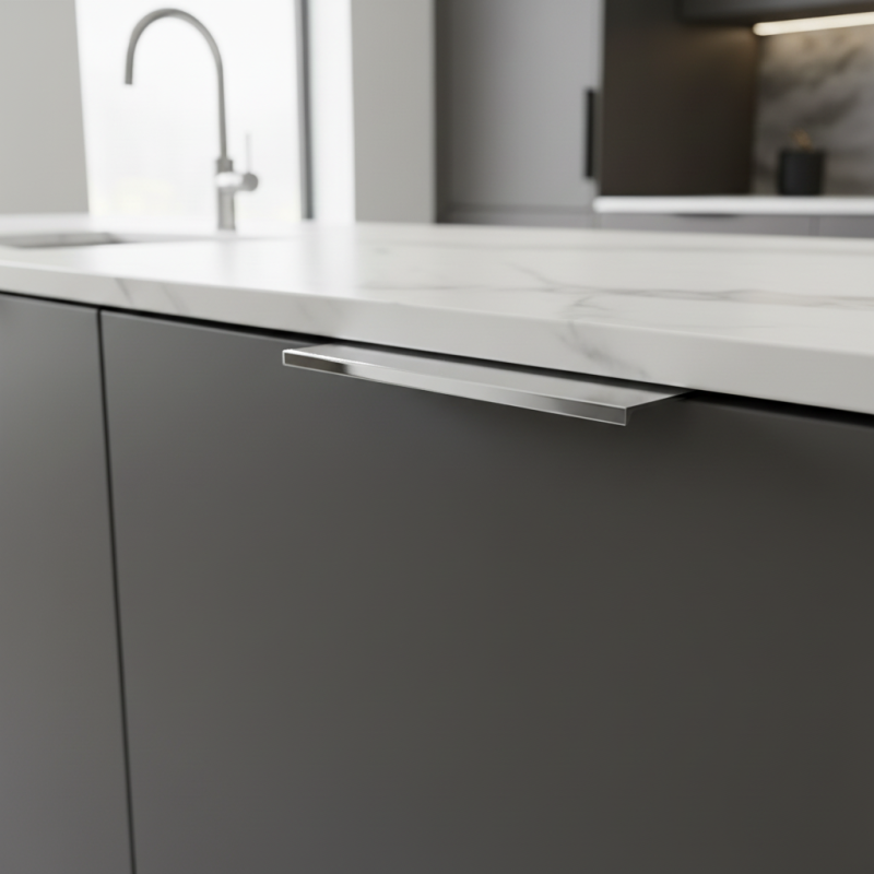 Er ist aus hochwertigem Metall mit einer widerstandsfähigen matten Oberfläche gefertigt, die sich angenehm anfühlt und gleichzeitig kratzfest ist. Das dünne, unauffällige Profil wirkt modern und fügt sich perfekt in Küchen, Badmöbel oder Wohnwände ein.