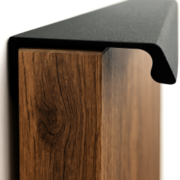 Der DELICIO-Griff ist so konzipiert, dass er direkt an der Kante von Möbeltüren oder Schubladen montiert werden kann. So entsteht ein sauberes und minimalistisches Erscheinungsbild, ohne dass eine herkömmliche Bohrung in der Oberfläche erforderlich ist. Seine schlanke und dennoch robuste Metallkonstruktion macht ihn praktisch, langlebig und modern zugleich.
