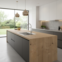 Die Platte besteht aus hochwertiger Spanplatte mit EGGER-Laminatoberfläche, die eine hohe Beständigkeit gegen Beschädigungen, Abrieb, Hitze und Feuchtigkeit bietet. Die ideale Wahl für Küchen, Esszimmer, Arbeitsbereiche oder Design-Interieurs.