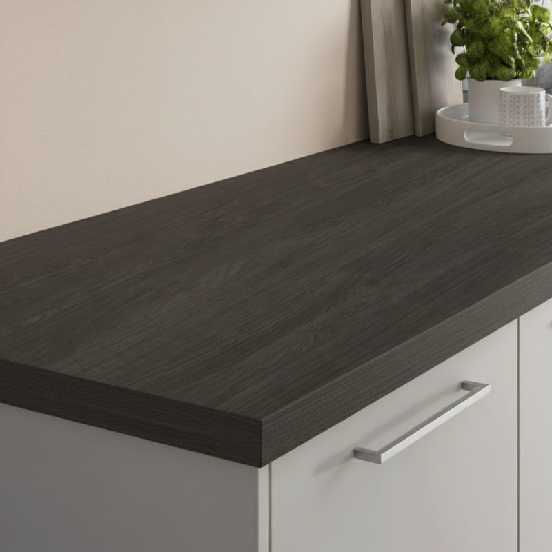 👉 KRONOSPAN Arbeitsplatte Carbon Marine / K016 SU ist die ideale Wahl für alle, die eine moderne, elegante und widerstandsfähige Oberfläche mit dunklem Holzcharakter wünschen – passt perfekt zu hellen sowie industriellen Interieurs.
