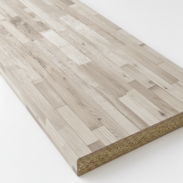 Erhältlich als Halbfabrikat oder als maßgefertigte Version mit präzisem Zuschnitt und Ummantelung mit ABS-Kante nach Kundenwunsch.