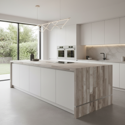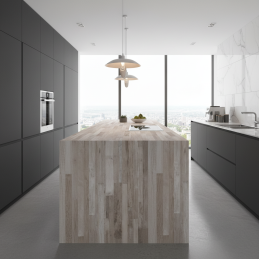 Die elegante und natürlich wirkende KRONOSPAN Arbeitsplatte im Dekor Linen Block Wood (K029 SU) bringt ein harmonisches Holzbild mit feiner Textur und hellen beige-grauen Tönen in den Innenraum. Dieses Dekor vereint die natürliche Holzmaserung mit dezentem Farbkontrast und schafft so eine gemütliche und moderne Atmosphäre in der Küche oder im Arbeitsbereich.