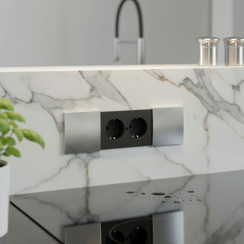 Die Innensteckdose BACHMANN DUE im eleganten Edelstahl-Design ist eine moderne und ästhetische Lösung für Küchen, Arbeitsplatten oder Büroräume. Dank der Verwendung des französischen Steckdosenstandards (Typ E) ist die Steckdose vollständig kompatibel mit der Elektroinstallation in der Slowakei, Tschechien und Polen.
