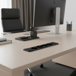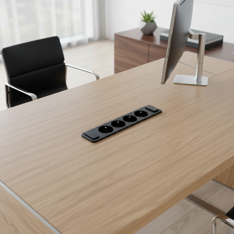 Die Innen-Steckdosenleiste CALON FRENCH ist eine praktische und ästhetische Lösung für Küchen, Büros, Schreibtische oder Möbel. Sie bietet 4× Steckdose 230V, wobei ihre kompakte Größe eine einfache Montage ermöglicht.