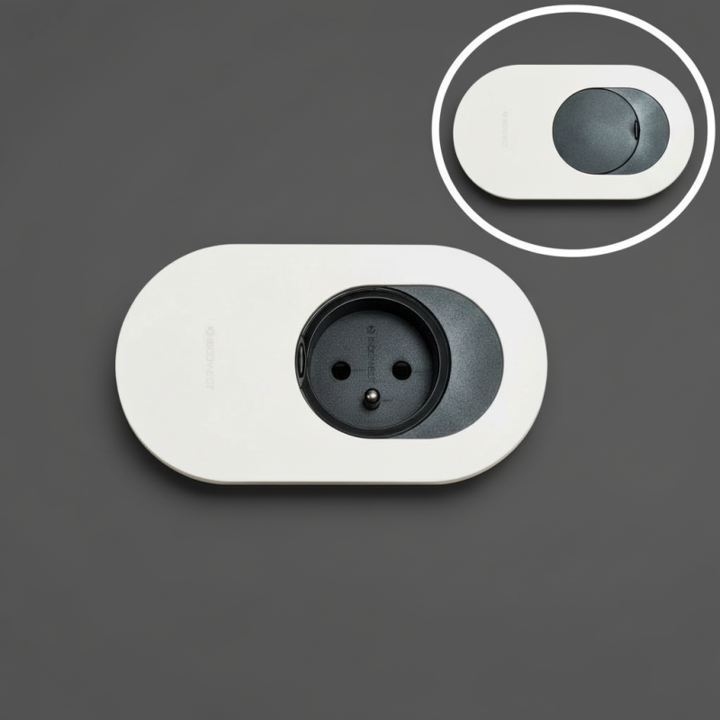 Die Design-Steckdose ORBIT ist eine moderne und elegante Lösung für jedes Zuhause oder Büro. Dank ihrer ovalen Form und dem minimalistischen Design wirkt sie besonders ästhetisch und bietet gleichzeitig eine praktische und sichere Nutzung. Die Abdeckung der Steckdose ist ausziehbar – nach dem Schließen schützt sie die Steckdose vor Staub und Schmutz.