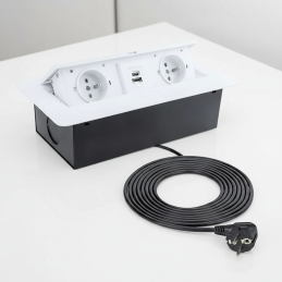 Die moderne ausklappbare Einbau-Elektrosteckdose KOMBI BOX in Weiß ist eine praktische und elegante Lösung für Schreibtische, Kücheninseln, Büromöbel und Wohnwände. Dank des Klappmechanismus bleibt die Steckdose bei Nichtgebrauch verborgen und bewahrt das saubere, ungestörte Erscheinungsbild des Innenraums.