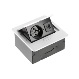 Die kompakte ausklappbare Elektrosteckdose BOX MINI in Aluminium-Ausführung bietet ein modernes und ergonomisches Design, das sich für die Installation in Schreibtischen, Küchenarbeitsplatten oder Möbeln (z. B. Wohnwand, Büromöbel) eignet. Das Öffnen erfolgt durch einfaches Drücken der Taste, das Schließen durch manuelles Zuklappen.