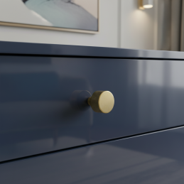 Der Knopf INDUST II. in der Oberfläche Altgold ist ein markantes und stilvolles Accessoire für alle Möbeltypen, das industriellen Charakter mit luxuriösem Retro-Look verbindet. Der größere Durchmesser verleiht dem Griff ein dominanteres Aussehen und setzt einen eleganten Akzent an Türen und Schubladen.