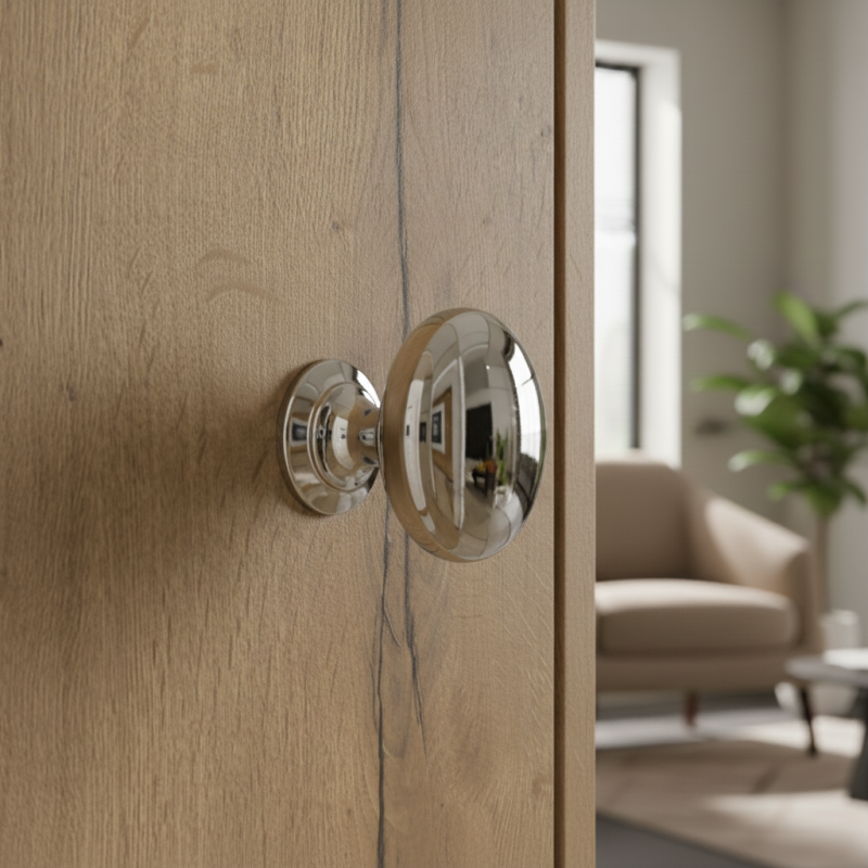 Der Knopf CAMORA in der Ausführung glänzendes Chrom ist ein modernes Accessoire, das Ihren Möbeln ein elegantes, sauberes und strahlendes Aussehen verleiht. Seine glatte Metalloberfläche mit hohem Glanz wirkt luxuriös und passt perfekt in moderne, minimalistische sowie industrielle Innenräume.