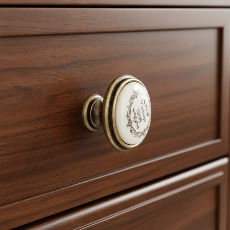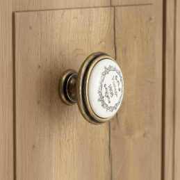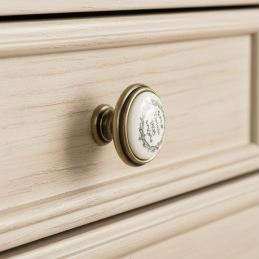 Die Porzellanknopf FRIDA in Altgold-Ausführung ist ein schönes und zeitloses Accessoire, das Ihren Möbeln einen edlen Vintage-Charakter verleiht. Sie kombiniert hochwertiges Porzellan mit elegantem Dekor Vintage 1898 und einem Metallkörper in altgoldener Patina, was zusammen ein stilvolles Element schafft, das sowohl für klassische als auch für ländliche Interieurs geeignet ist.