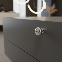 Der Knopf VALEA in der Ausführung Chrom glänzend verleiht Ihren Möbeln ein elegantes Aussehen und sorgt gleichzeitig für eine komfortable tägliche Nutzung.