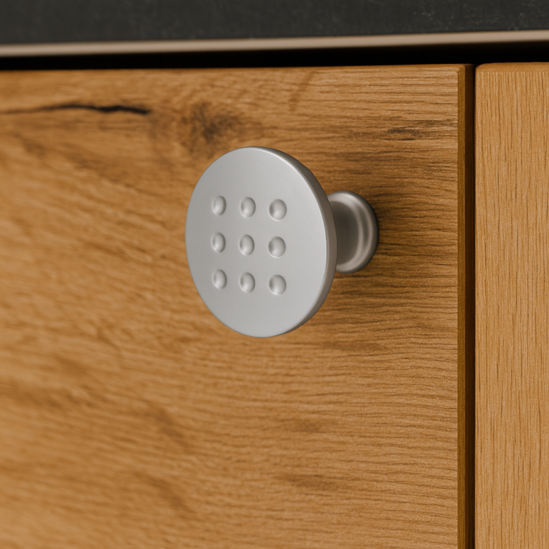 Der VISTA SLIM Knopf ist ein dezentes und praktisches Accessoire, das Ihren Möbeln Stil und Funktionalität verleiht. Dank seiner abgerundeten Form und seiner kompakten Abmessungen liegt er angenehm in der Hand und sieht gleichzeitig in Küche, Wohn- und Schlafzimmer elegant aus.