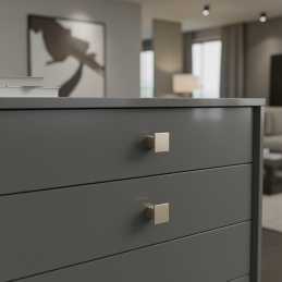 Knopfgriff AXON in der Ausführung gebürstetes Nickel verleiht ein modernes und zeitloses Aussehen, das verschiedene Einrichtungsstile hervorragend ergänzt. Seine eckige Form wirkt elegant und technisch, während das gebürstete Nickel der Oberfläche eine feine Textur und einen angenehmen Metalleffekt verleiht. Dieser Griff ist eine ausgezeichnete Wahl für Küchen, Bäder, Wohnzimmer oder Büros – überall dort, wo Sie Ästhetik mit Funktionalität verbinden möchten.