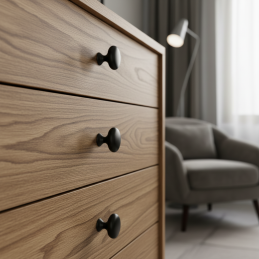 Der Knopf ist die ideale Wahl für Küchen, Kommoden, Kleiderschränke und Badezimmermöbel, wo er einen klaren und modernen Designakzent setzt.