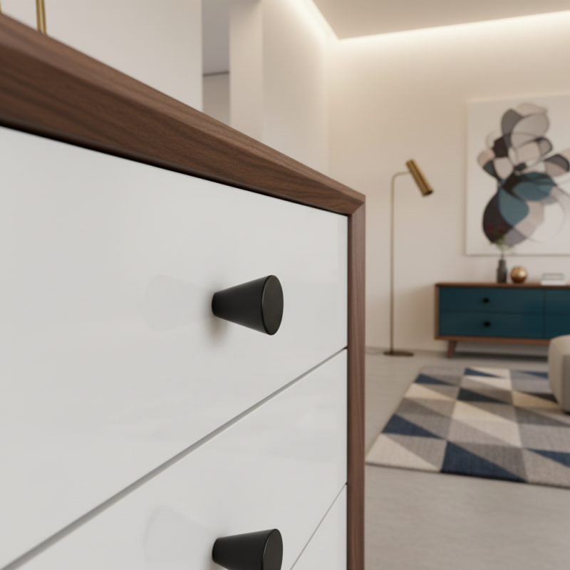 Dieser Griff ist geeignet für Schränke, Kommoden, Nachttische oder Küchenschranktüren. Das minimalistische Design garantiert eine universelle Verwendung in jedem Stil.