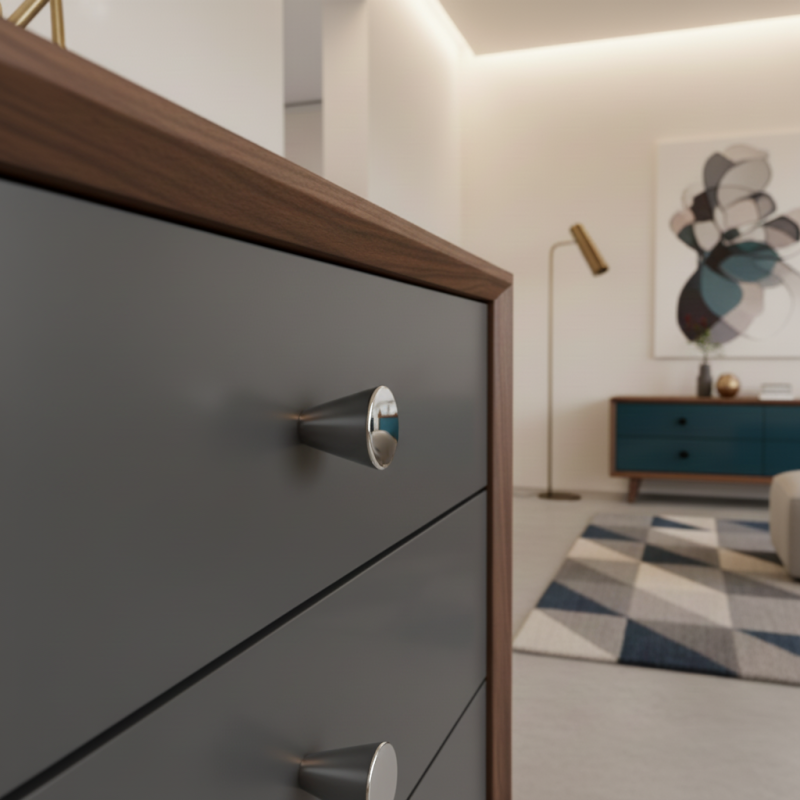Eleganter und moderner Möbelknopf MANGO in der Ausführung glänzendes Chrom verleiht Ihren Möbeln ein zeitloses und hochwertiges Aussehen. Dank der einfachen konischen Form liegt er angenehm in der Hand und lässt sich leicht mit verschiedenen Einrichtungsstilen kombinieren.