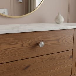 Stilvoller Möbelknopf MANGO in der Ausführung mattes Chrom stellt eine elegante und universelle Lösung für moderne sowie klassische Möbel dar. Seine konische Form sorgt für ein angenehmes Greifen und ein zeitloses Design.