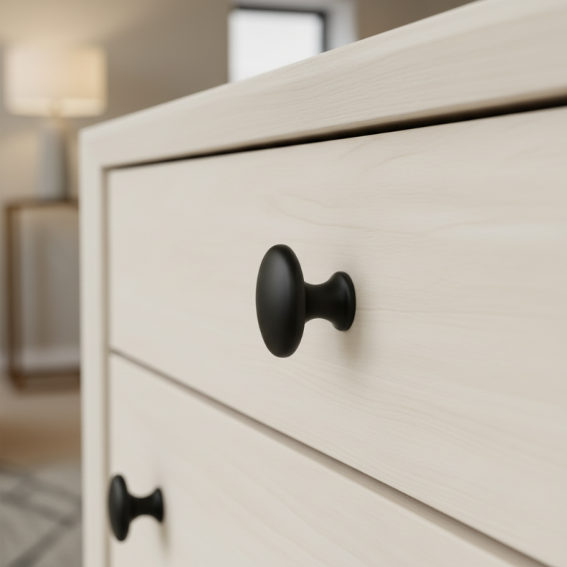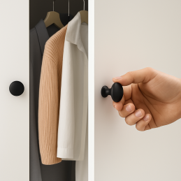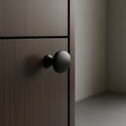 Dank seiner minimalistischen Form und mattschwarzen Ausführung passt er in moderne, industrielle und rustikale Innenräume, wo er den Möbeln ein luxuriöses und zeitloses Aussehen verleiht.
