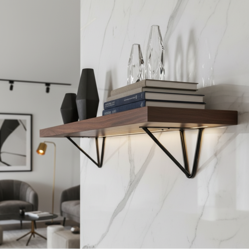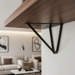 Moderner und stabiler Regalhalter im beliebten Hairpin-Stil, der minimalistisches Design mit hoher Widerstandsfähigkeit verbindet. Dank der Stahlkonstruktion und der durchdachten Verstärkung bietet er hervorragende Stabilität auch bei höherer Belastung und ist daher für Küche, Wohnzimmer, Arbeitszimmer oder Werkstatt geeignet.