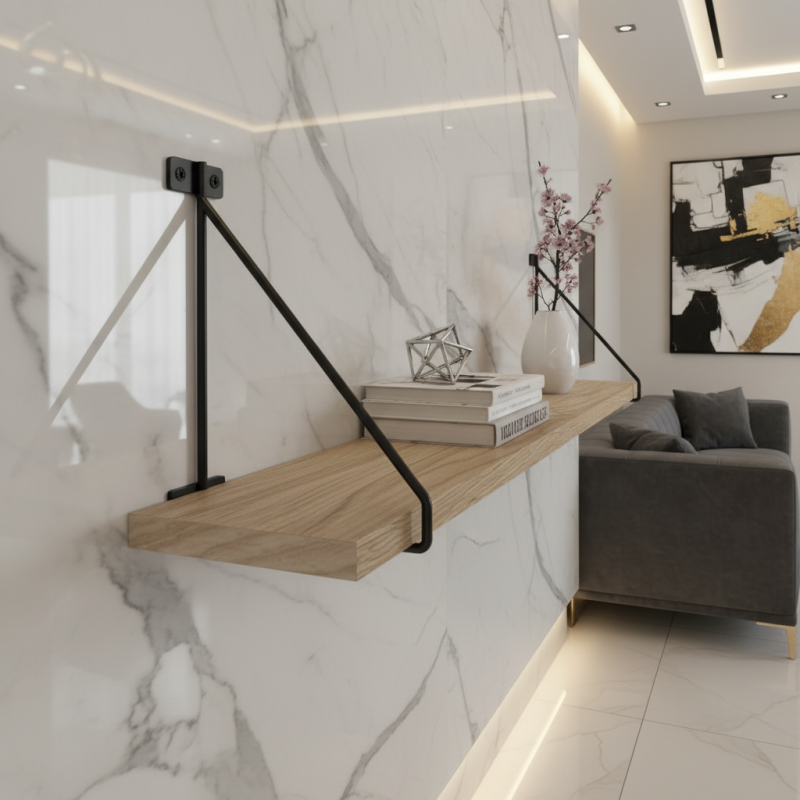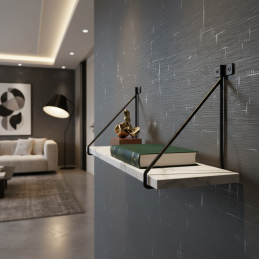 Der moderne Regalhalter TRIANGLE in Schwarz ist eine stilvolle und zugleich funktionale Lösung für offene Regale im Wohnzimmer, in der Küche, im Arbeitszimmer oder im Flur. Das minimalistische geometrische Design wirkt elegant und fügt sich leicht in moderne sowie industrielle Interieurs ein.
