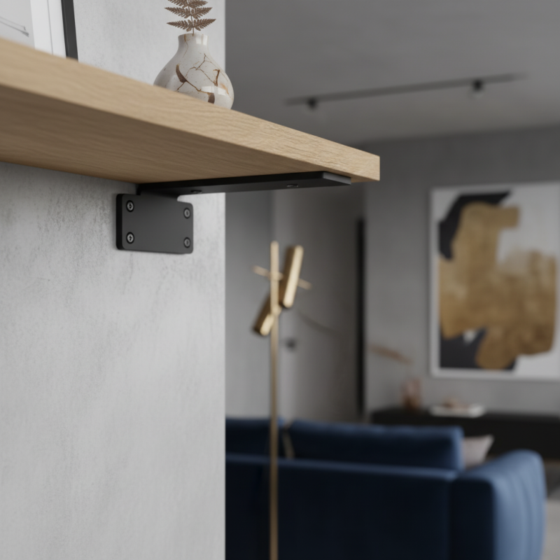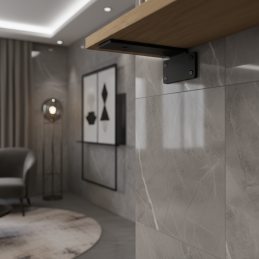 Der moderne und praktische Halter CASILA ist für die feste und ästhetische Befestigung von Regalen bestimmt. Dank des minimalistischen Designs und der hochwertigen Ausführung aus Stahl eignet er sich für moderne Innenräume, Büros oder Wohnbereiche. Nach der Montage ist der Halter unter dem Regal verborgen, was ein sauberes und elegantes Aussehen schafft.