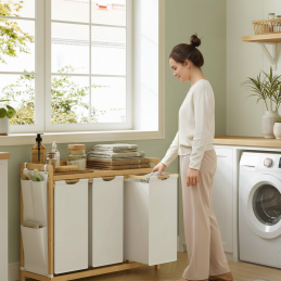3 herausnehmbare Textilbeutel zum Sortieren der Wäsche
