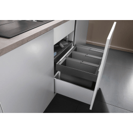 Blanco Flexon II 60/3 ist ein modernes und übersichtliches Abfalltrennsystem, das für den Einbau in Unterschränke mit Schublade konzipiert ist. Dank der drei Behälter mit einem Fassungsvermögen von 3 × 15 Litern bietet es eine effiziente und hygienische Lösung für die Abfalltrennung im täglichen Haushaltsbetrieb.