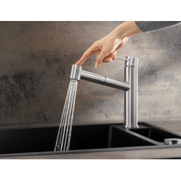 Ausziehbare Brause: Mit der Möglichkeit, zwischen klassischem oder Brausestrahl umzuschalten – für einfacheres Spülen von Geschirr und Reinigen des Spülbeckens.