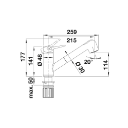 Der ergonomisch oben angebrachte Hebel ermöglicht eine einfache Wassersteuerung. Der um 180° schwenkbare Auslauf bietet einen ausreichenden Arbeitsbereich. Für einen zuverlässigen Betrieb sorgen die Keramikkartusche und das integrierte Rückschlagventil nach EN 1717.