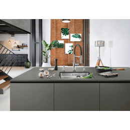 Blanco Catris-S Flexo vereint klassische Linien mit modernem halbprofessionellem Look und Funktionalität. Der flexible schwarze Silikonschlauch ermöglicht maximale Bewegungsfreiheit, während die Doppelfunktion-Brause perfekten Komfort für die tägliche Küchenarbeit bietet.