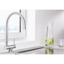 Diese Armatur ist eine praktische Lösung für Küchen mit einem unter dem Fenster platzierten Spülbecken. Dank des Klappmechanismus, der hochwertigen Verarbeitung und des eleganten Designs vereint sie Funktionalität, Ästhetik und Komfort. Blanco Coressa-F verleiht Ihrer Küche ein modernes Aussehen und macht die tägliche Nutzung durch ihre Einfachheit und Zuverlässigkeit angenehmer.