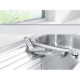 Blanco Daras-F ist eine praktische und preiswerte Küchenarmatur zur Montage vor dem Fenster. Dank des Klappmechanismus bietet sie eine einfache und schnelle Bedienung – die Armatur muss lediglich senkrecht angehoben und zur Seite gelegt werden, damit das Fenster ungehindert geöffnet werden kann. Sie ist die ideale Wahl für Küchen, in denen das Spülbecken unter der Fensterbank platziert ist.