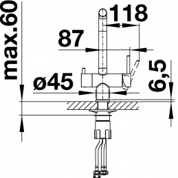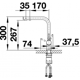 Die Armatur Blanco Fontas II muss in Kombination mit einem Wasserfiltersystem installiert werden (nicht im Lieferumfang enthalten).