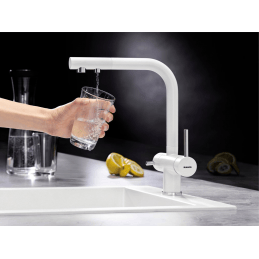 Platzsparend – es ist kein zusätzliches Bohren für eine separate Armatur für gefiltertes Wasser erforderlich.