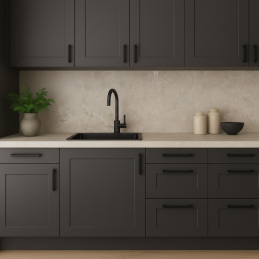 Verleihen Sie Ihrer Küche praktischen Schutz und ein elegantes Aussehen mit unserer Küchenrückwand aus hochwertiger Spanplatte, die mit strapazierfähigem Laminat beschichtet ist. Dieses Material zeichnet sich durch eine hohe Widerstandsfähigkeit gegen Beschädigungen, mechanische Belastung und erhöhte Temperaturen aus, was eine lange Lebensdauer auch bei täglichem Gebrauch garantiert.