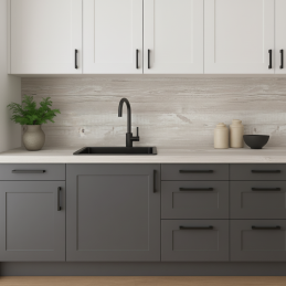 Küchenblock aus Spanplatten mit Laminatbeschichtung. Hohe Widerstandsfähigkeit gegen Beschädigung, Belastung oder hohe Temperaturen während des Gebrauchs.