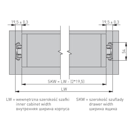 Für die Berechnung der Schubladenbreite muss von der Innenbreite des Korpus 19,5 mm abgezogen werden