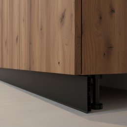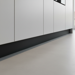 Stilvolle und robuste Küchensockelleiste aus Kunststoff PAX im Farbton schwarz matt RAL 9005 ist die ideale Ergänzung für moderne Küchenzeilen mit industriellem oder minimalistischem Look.