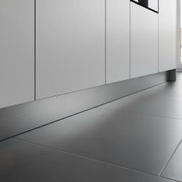 Eleganter Küchensockel aus Kunststoff PAX im Dekor gebürsteter Edelstahl ist die ideale Lösung für moderne, industrielle und klassische Küchen.