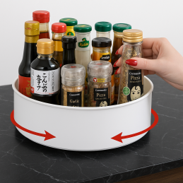 Nie wieder müssen Sie Schränke durchwühlen und Zeit mit der Suche nach dem richtigen Gewürz verschwenden. Mit ROTTA haben Sie alle Ihre Gewürze, Saucen, Gläser oder kleinen Küchenutensilien an einem Ort organisiert. Dank des drehbaren Sockels brauchen Sie ihn nur leicht zu drehen, und Sie haben sofort einen Überblick über alles, was Sie brauchen.