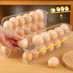 Die Eier rollen automatisch nach vorne, wenn Sie eines entnehmen – so haben Sie immer einfachen Zugriff, ohne Verpackungen öffnen oder Eier umräumen zu müssen.