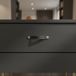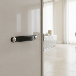 Der elegante Ledergriff CASE vereint minimalistisches Design und hochwertige Verarbeitung. Hergestellt aus echtem Leder mit kontrastierenden Nähten und ergänzt durch moderne Metallabdeckungen, wirkt er zeitlos und eignet sich für Küchen, Wohnzimmer, Kinderzimmer sowie Büros.