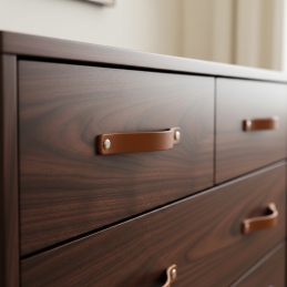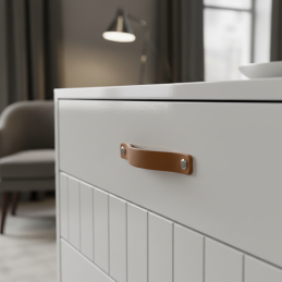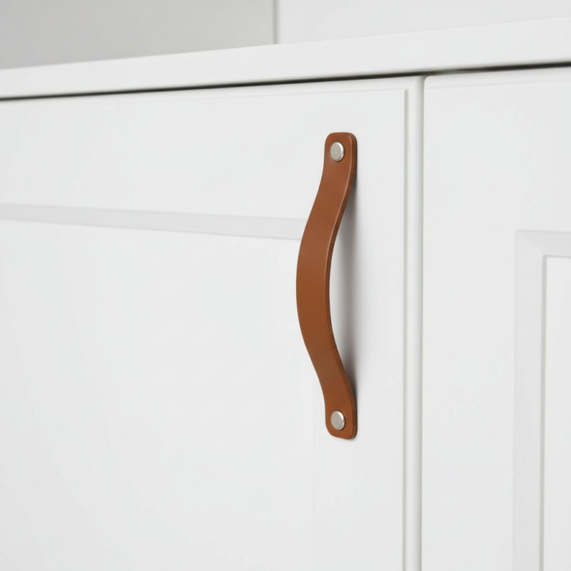 Dank der natürlichen Elastizität des Leders ist der Griff angenehm zu berühren und passt sich perfekt an verschiedene Arten von Türen oder Schubladen an. Er kann auch als Lederknopf verwendet werden.