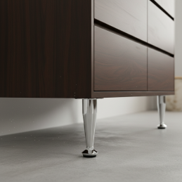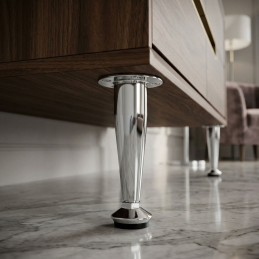 Die glänzende Chromoberfläche wirkt luxuriös und lässt sich leicht mit modernen sowie klassischen Möbeln kombinieren. Der Fuß eignet sich zum Beispiel für Schränke, Kommoden, Badmöbel oder kleinere Tische.