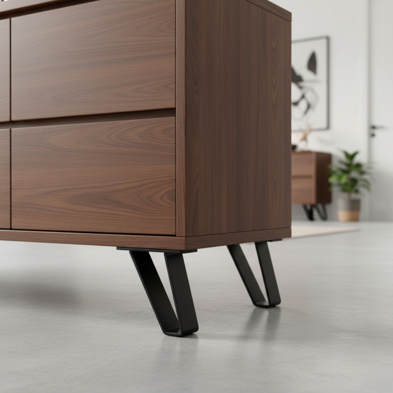 Der Fuß SONIA Mini ist ideal für Kommoden, Schränkchen, Nachttische, TV-Tische oder kleinere Aufbewahrungsmöbel, bei denen eine geringere Fußhöhe, aber gleichzeitig hohe Festigkeit und Zuverlässigkeit gefragt sind. Dank der breiten Montageplatte sorgt er für eine gute Gewichtsverteilung und eine stabile Befestigung am Möbelkorpus.