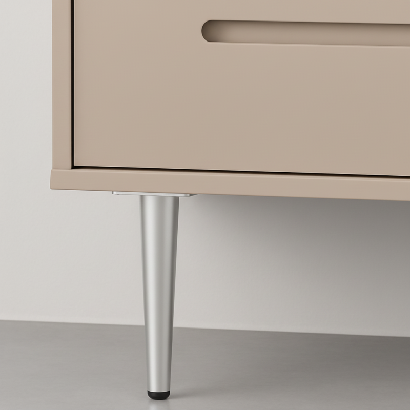 Das Möbelbein GLOBAL in mattem Chrom stellt ein modernes, elegantes und zugleich dezentes Designelement dar, das eine breite Palette von Möbelstilen ergänzt. Seine leicht zulaufende Form wirkt zeitlos und verleiht den Möbeln eine visuelle Leichtigkeit ohne störende Reflexionen. Mattchrom ist ideal für Innenräume, in denen ein anspruchsvolles und klares Erscheinungsbild bevorzugt wird.