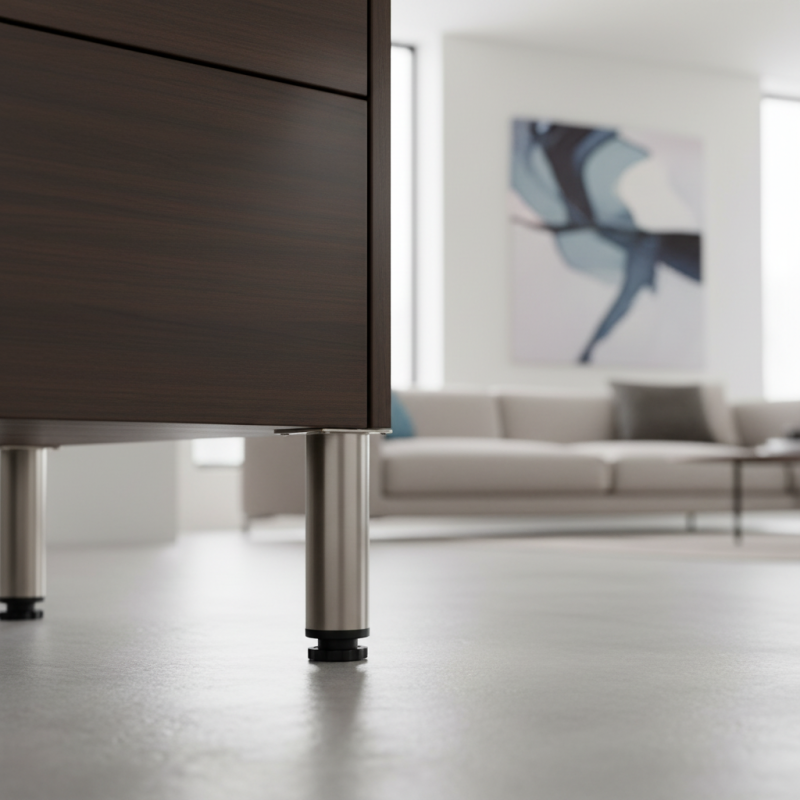 Geben Sie Ihren Möbeln eine moderne und stabile Basis mit dem eleganten Metallfuß ARTURO. Seine klare, runde Form mit einem Durchmesser von 40 mm passt perfekt zu Kommoden, Schränken, Tischen und Kücheneinrichtungen. Dank der verschiedenen verfügbaren Höhen und der Möglichkeit der Feinjustierung passt er sich perfekt an verschiedene Arten von Innenräumen und Bodenunebenheiten an.