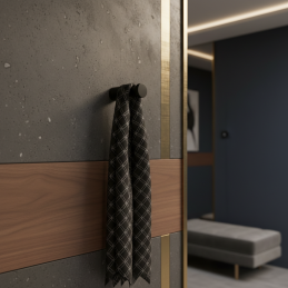 Der Haken kann auch mit einem größeren Haken im gleichen Design kombiniert werden, wodurch ein einheitliches und harmonisches Erscheinungsbild des Interieurs entsteht.